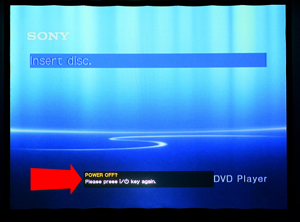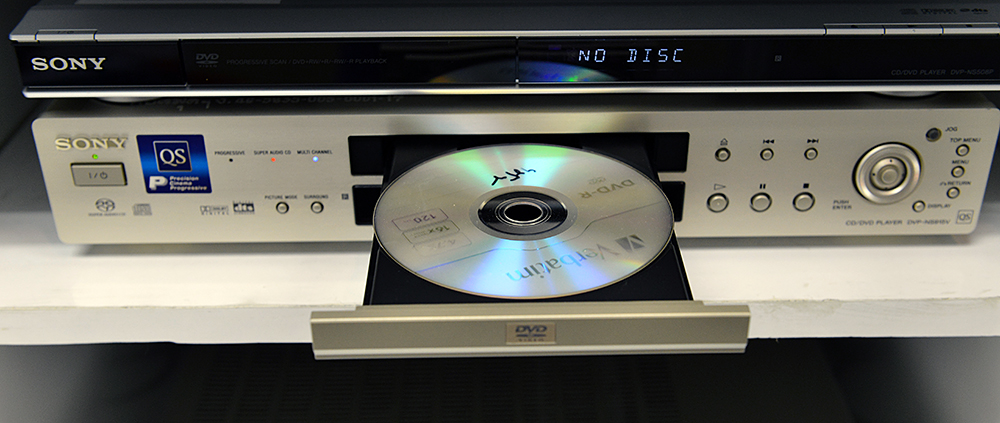 ๑. เมื่อฉายภาพยนตร์เสร็จเรียบร้อยต้องการปิดโสตทัศนูปกรณ์ที่ใช้ในการฉาย ภาพยนตร์ โดยเริ่มจากการนำแผ่นภาพยนตร์ออกจากเครื่องเล่นดีวีดี SONY และดำเนินการปิดเครื่องเล่นดีวีดี ดังแสดงในภาพ ๑