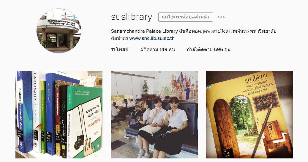 เพื่อนๆ พี่ๆ ชาวหอสมุดฯ ท่านใดที่เล่นโซเชียลมีเดียแล้วละก็ อย่าลืมกด Follow Instagram ขอหอสมุดฯ เราด้วยที่ IG : suslibrary นะคะ