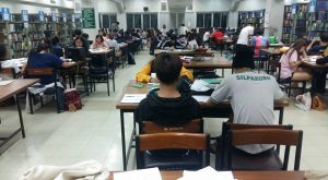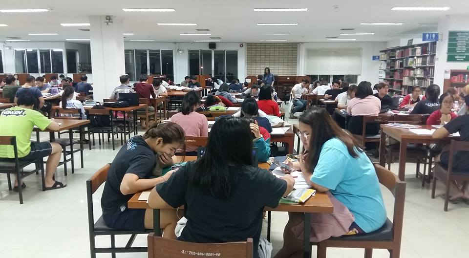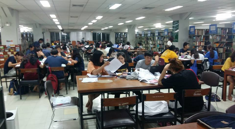 เปิดบริการ 24 ชั่วโมงได้เดินทางมาพบกันอีกครั้ง น้อง ๆ ผู้ร่วมเดินทางคุณอนิรุจ และคุณสมจิตร พบกันที่อาคารหอสมุดพระราชวังสนามจันทร์ ในคืนที่ 3 บรรยากาศเริ่มคึกคักตั้งแต่ 4 ทุ่ม นักศึกษาแจ้งที่นั่งเต็ม ได้แจ้งให้นักศึกษามาใช้บริการที่ ห้องดร. เจตนา นักศึกษาเริ่มทยอยเดินทางกลับ เวลาประมาณ 02.00 น. สำหรับน้อง ๆ ที่สนใจอ่านหนังสือแบบนั่งพื้น ทางหอสมุดฯ มีบริการเสื่อ และโต๊ะญี่ปุ่นสำหรับนั่งอ่านหนังสือ ณ ห้องโถงชั้น 1