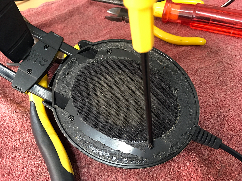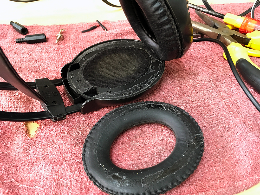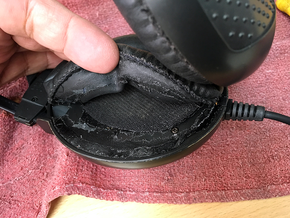 ทำการแกะ Earpads ที่ทำด้วยหนังออก (เป็นกาวเหนียวๆ สามารถแปะกลับคืนได้)