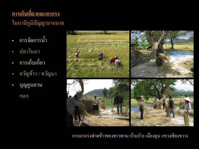 ให้ข้อมูลด้านนิเวศวัฒนธรรม กลุ่มชาติพันธุ์ไทที่ยังคงไว้ซึ่งเอกลักษณ์ของภาษาและวัฒนธรรม พื้นที่ลุ่มน้ำภาคกลาง ความต่างของบริบทระหว่างพื้นที่ต้นกำเนิดกับถิ่นฐานในประเทศไทย และการปรับตัวของกลุ่มชนโดยองค์รวมที่เกี่ยวเนื่อง